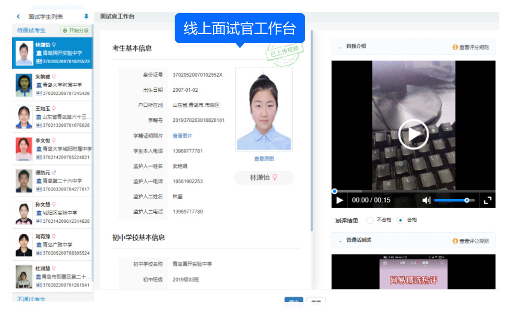 對于審核通過的考生,其查看頁面還會展示各測評項目的視頻上傳信息及測評結(jié)果,對于處于測評中狀態(tài)的考生,查看頁支持“允許考生重新上傳視頻”的功能,而對于測評中及后續(xù)狀態(tài)的考生,查看頁的測評項目還支持“重置測評結(jié)果”操作,以應(yīng)對某些特殊情況下的需求調(diào)整。
